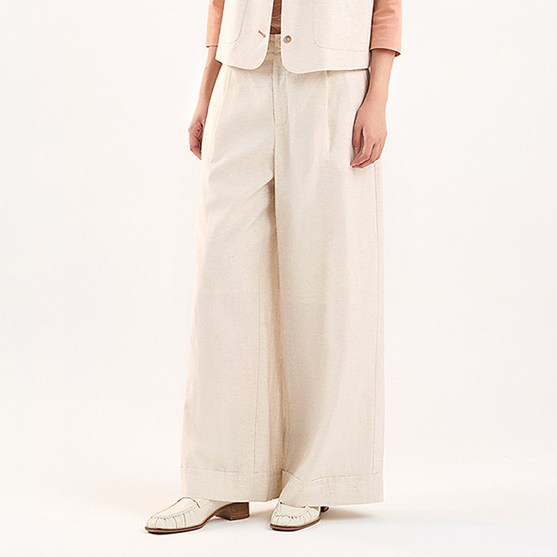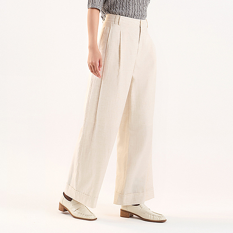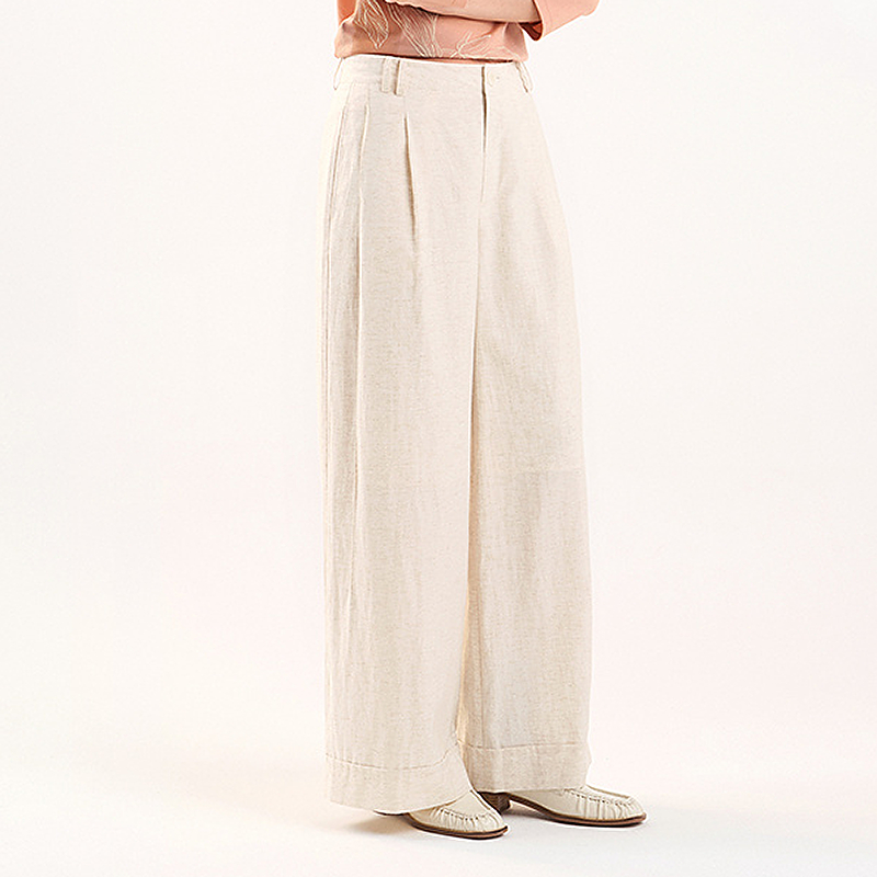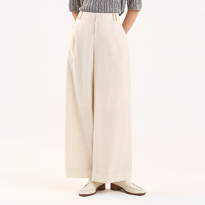 显瘦休闲裤 易菲平纹麻混纺垂坠感宽松阔腿裤 Yifini 女 专柜同款