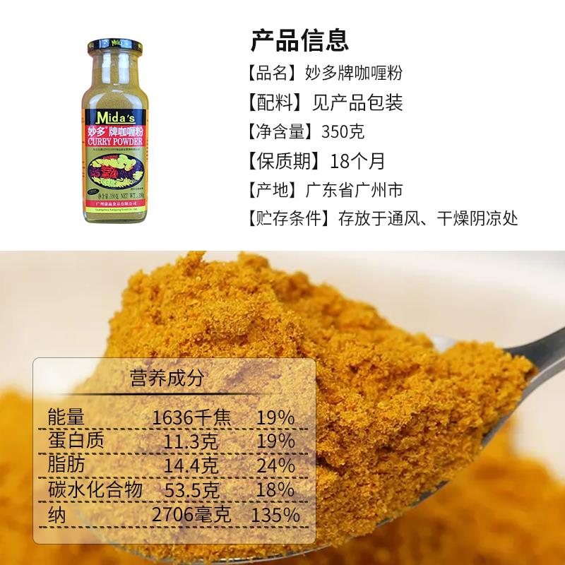 正品 印度黄咖喱泰国咖喱粉调味料商用原装 12瓶 妙多牌咖喱粉350g