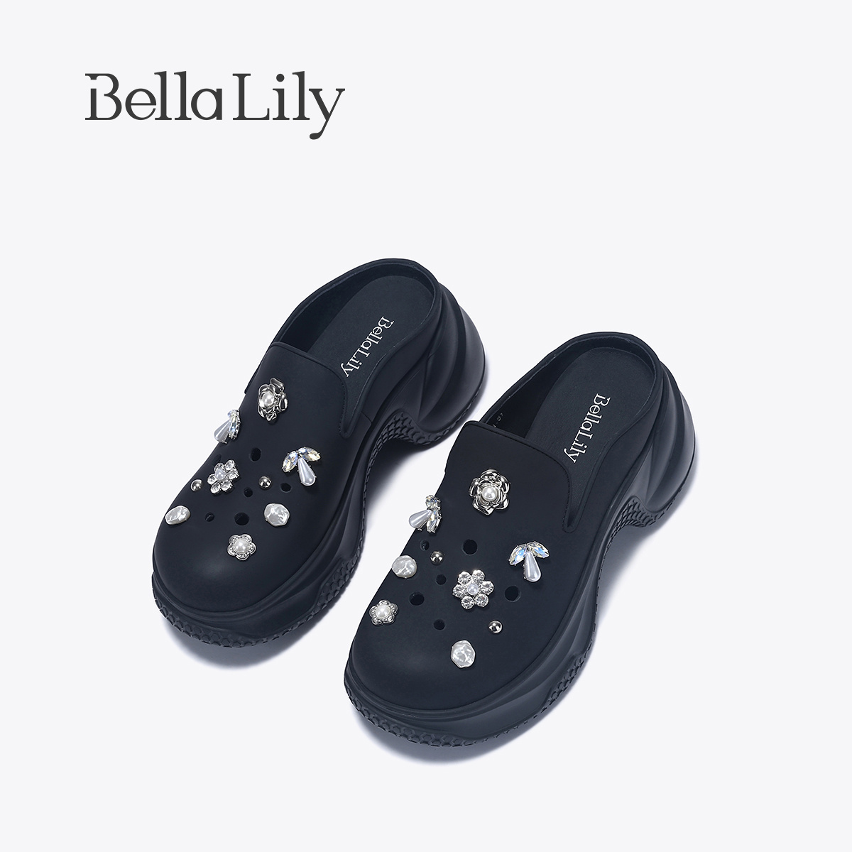 周雨彤同款 2代包头穆勒女拖E4T1DCH预 百丽厚底增高花生吐司勃肯鞋