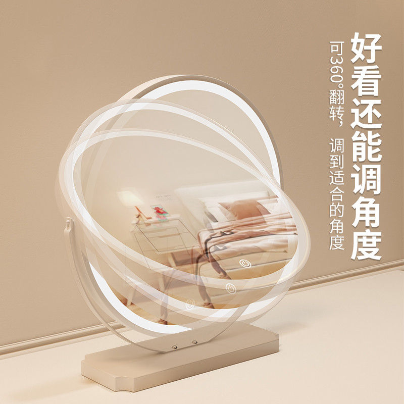 带灯梳妆台智能led化妆镜简约女生家用卧室学生宿舍台式 桌面镜子
