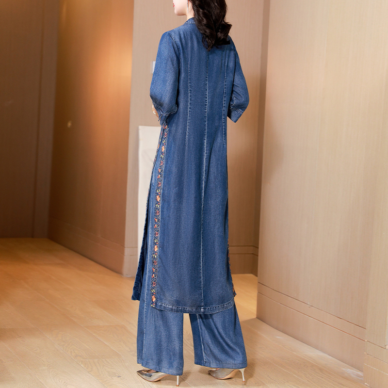 国风套装 复古气质刺绣牛仔连衣裙裤 女新中式 新款 子两件套2025春季
