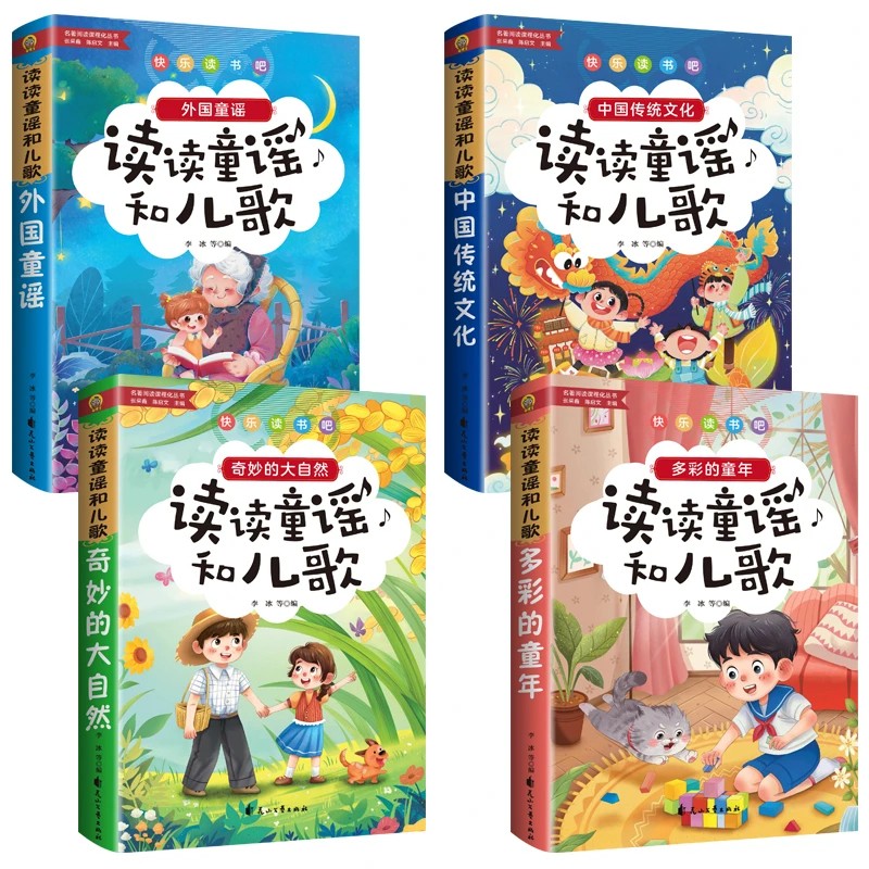 大自然同步教材 阅 童年 扫码 精美插图 大字注音 奇妙 外国童谣 中国传统文化 4册多彩 快乐读书吧一年级下册读读童谣和儿歌套装