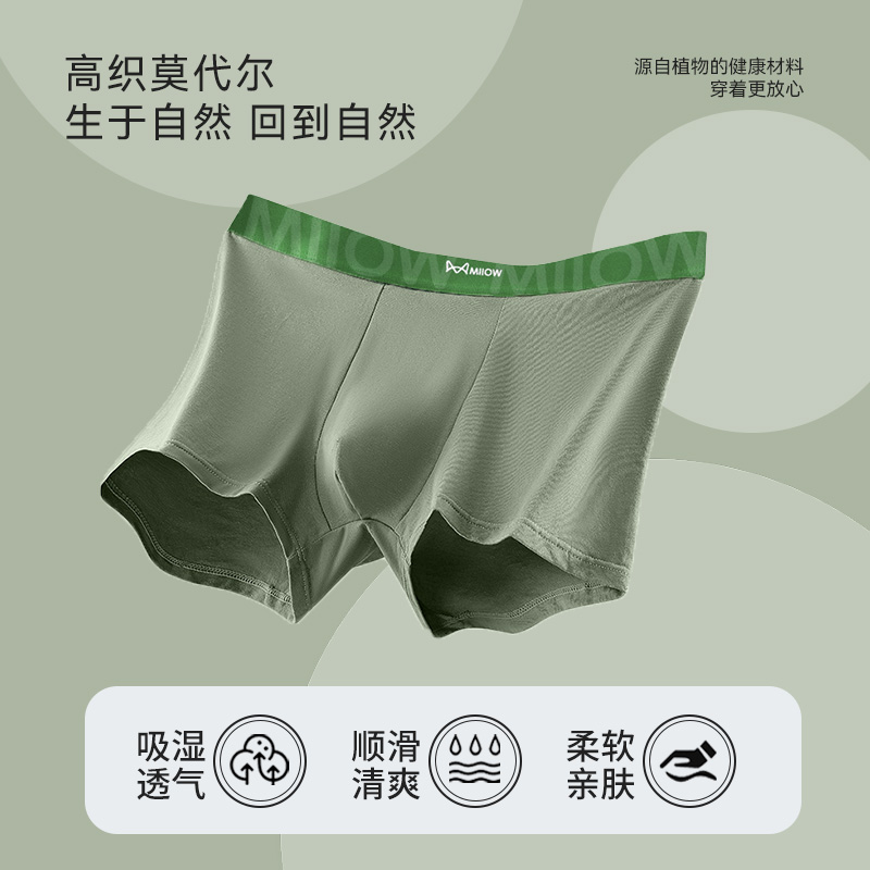 莫代尔纯棉透气四角短裤 平角冰丝内裤 男生 蕉内凉皮311CA男士 3件