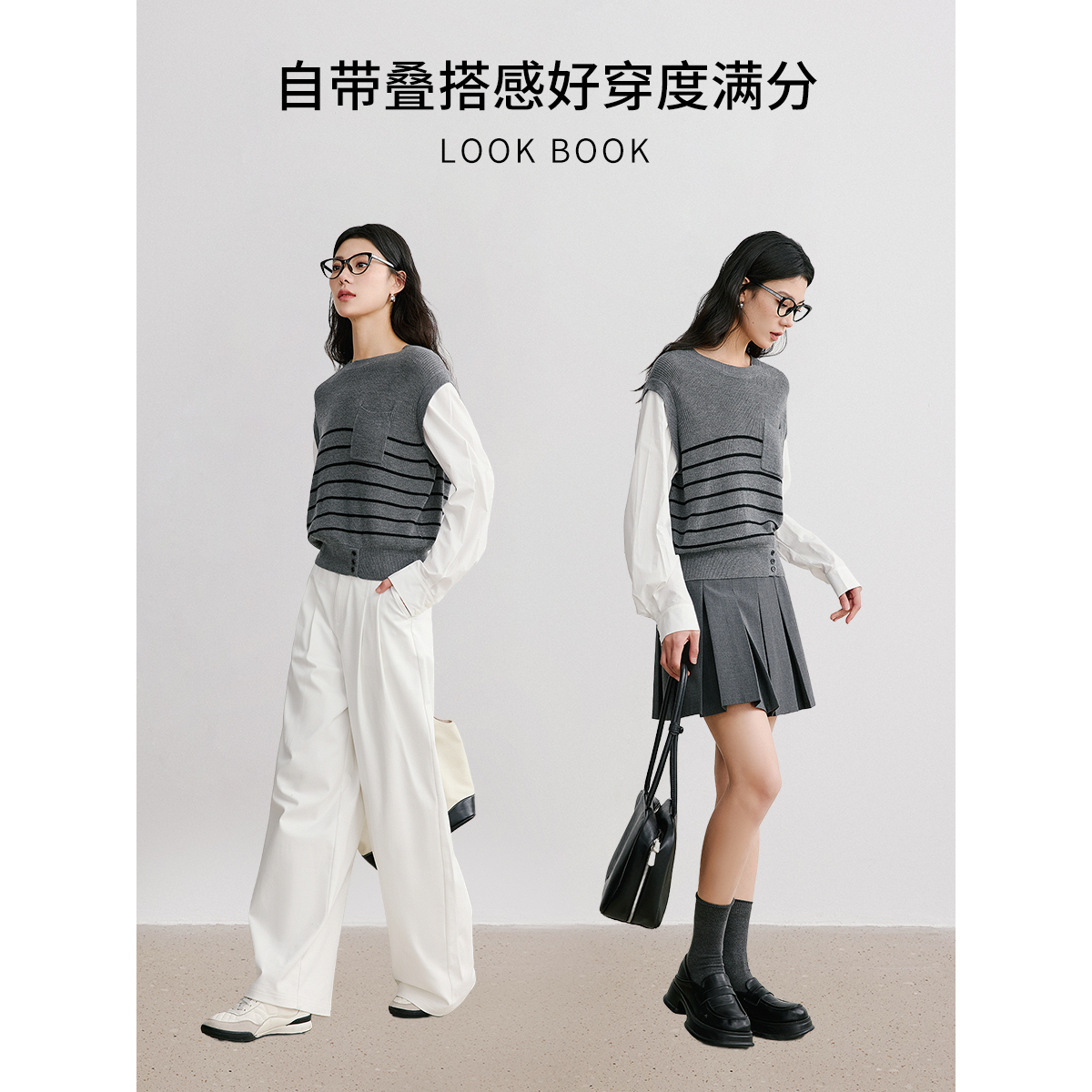羊毛针织开衫 百家好2025秋新款 女连帽假两件毛衣外套 House Basic