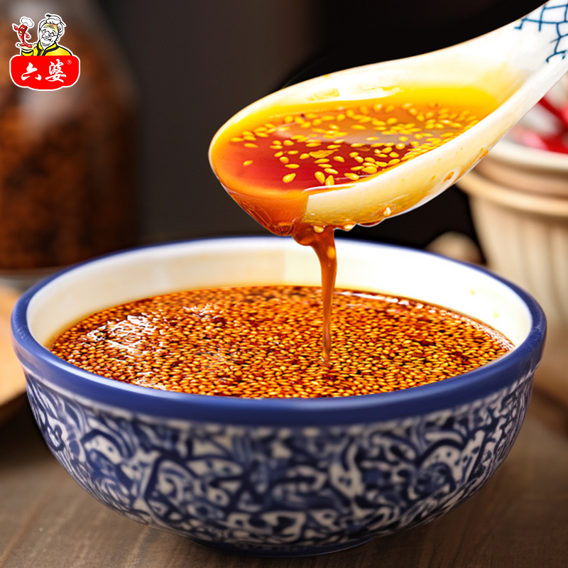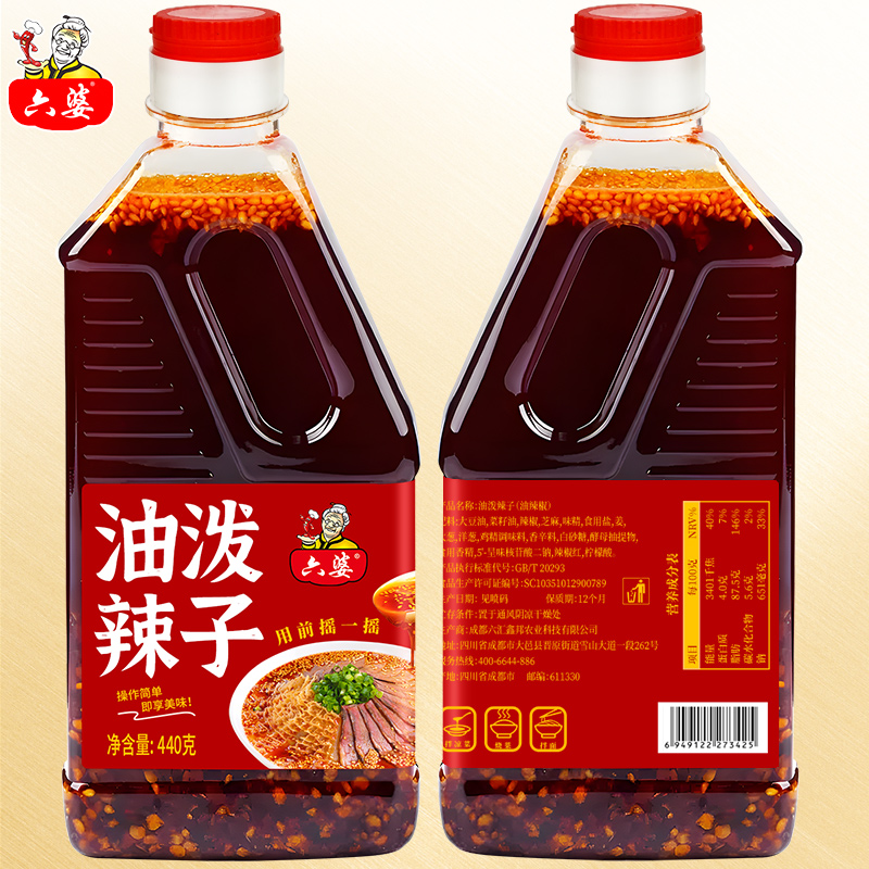 六婆官方油泼辣子四川自制红油辣椒油拌面卤肉凉菜调料440g蘸料