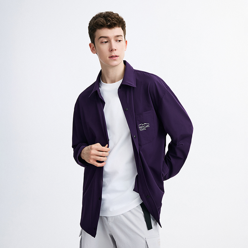 新款 男士 休闲衬衣宽松轻薄外套 衬衫 NAVIGARE意大利小帆船紫色长袖