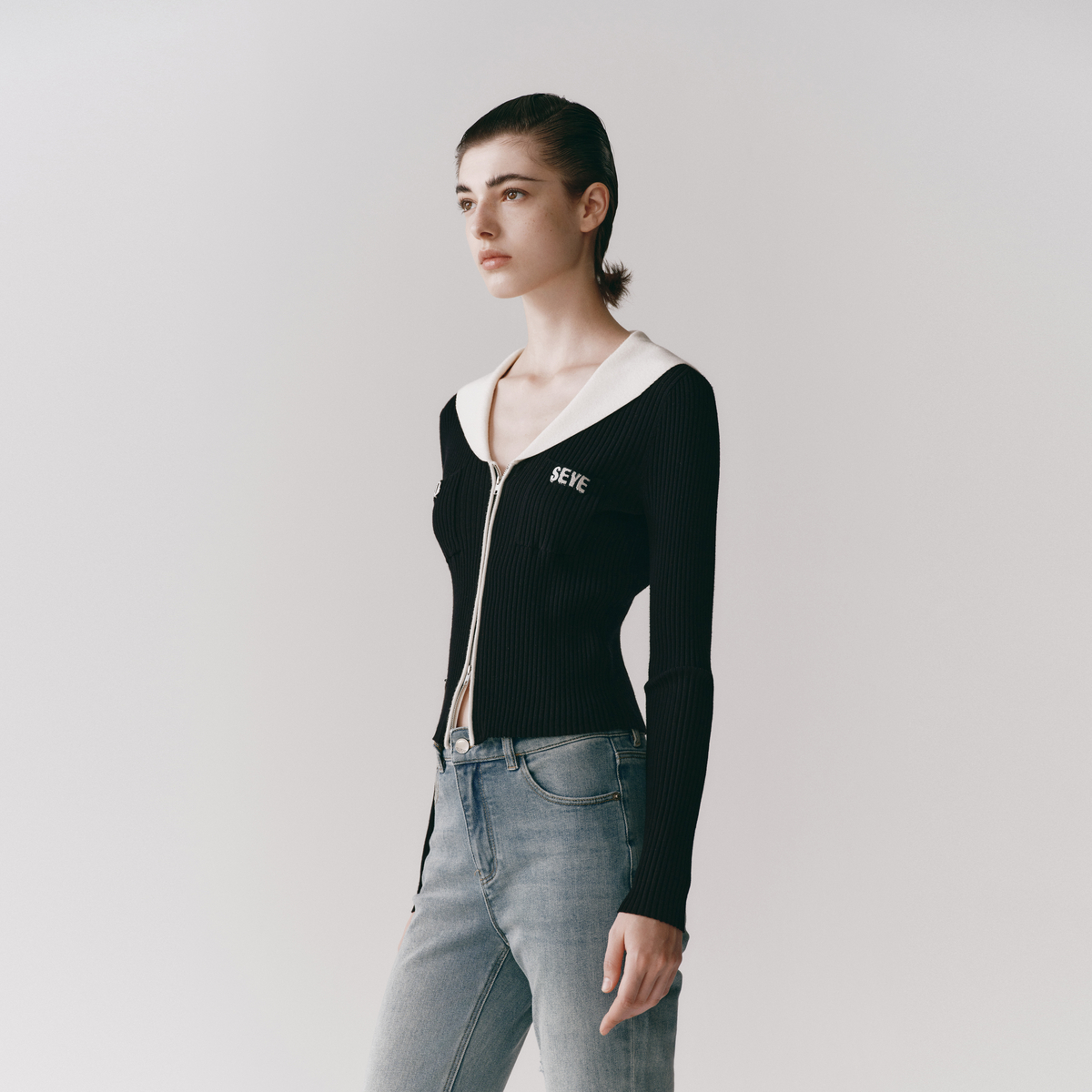 艾诺丝雅诗 女春秋40228131 59.9莱赛尔&25.3三醋酸撞色翻领针织衫