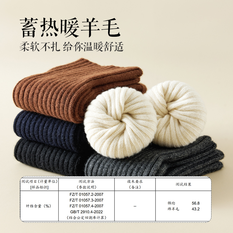 超厚羊毛袜子男秋冬加厚加绒羊绒袜毛绒保暖中筒棉袜高筒冬季 长袜