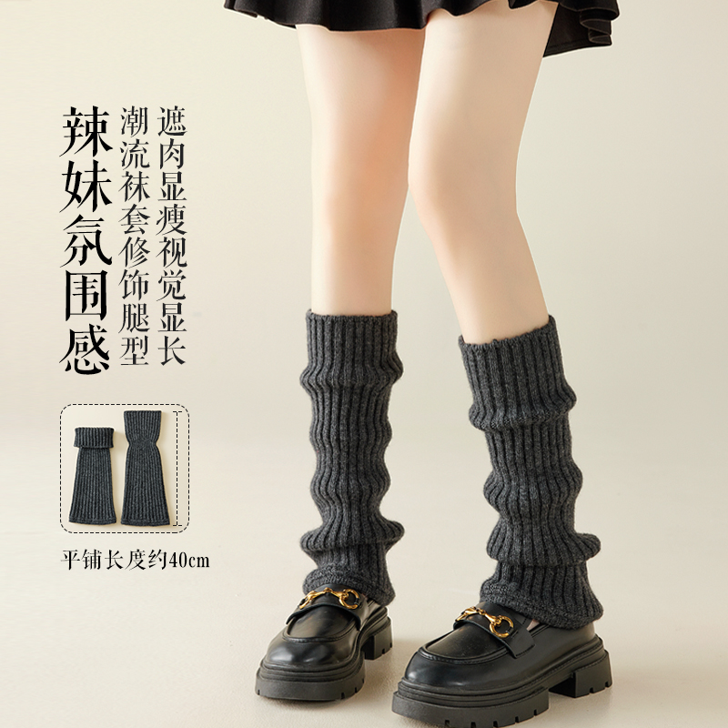 棕咖色月子长袜 乐福鞋 木耳边堆堆袜子女秋冬季 纯棉中筒袜配小皮鞋