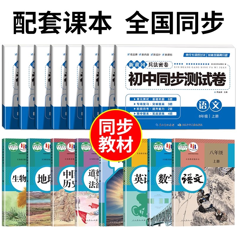 8下必刷题练习册 试卷 初二八年级上册全套试卷人教版 初中同步测试卷语文数学英语物理政治历史地理生物全程测评全能期末综合单元