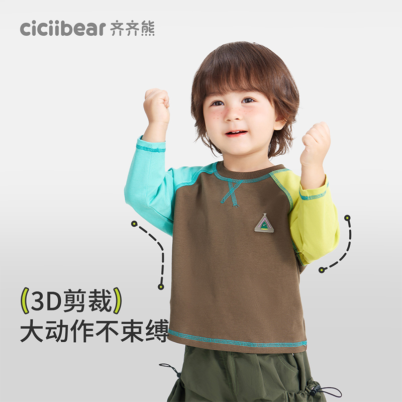 全棉上衣宝宝休闲女 齐齐熊男童纯棉T恤2025春秋长袖 5A抗菌凉感