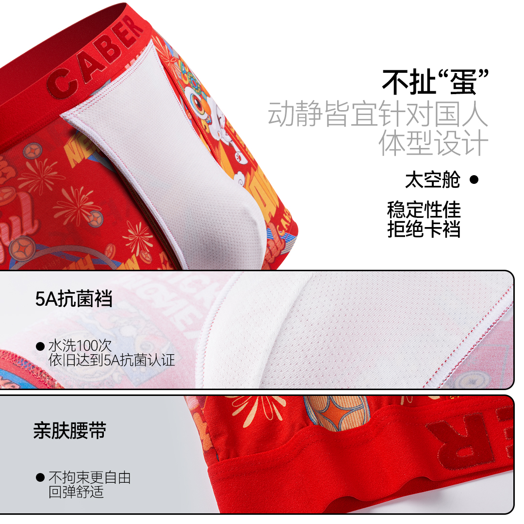 男生本命年情侣结婚印花莫代尔纯棉四角内裤 卡百利 caber大红内裤
