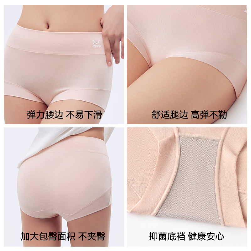 女士纯棉中腰女生内裤 不夹臀抗菌内裤 三角裤 新款 短裤 全棉时代内裤
