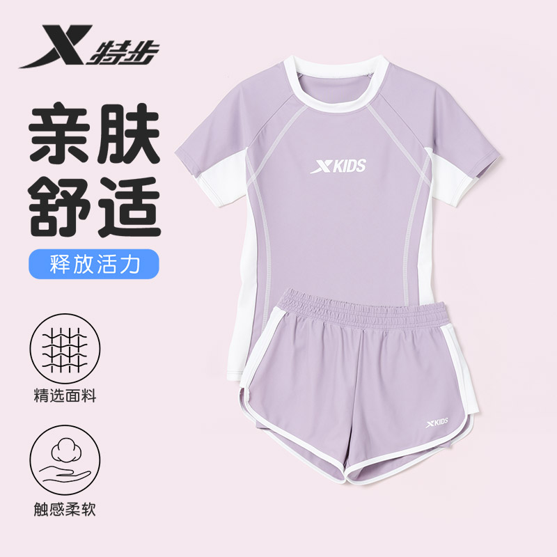 特步儿童泳衣女童2025新款 夏小女孩中大童分体初中生保守游泳套装