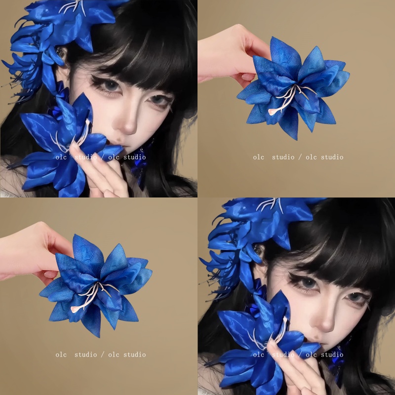 夜蓝百合 盘发器 克莱因蓝花朵发夹女春夏海边拍照侧边鸭嘴夹中式
