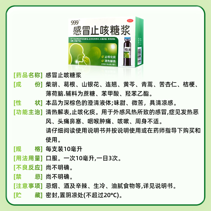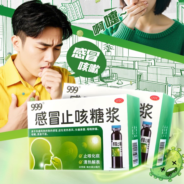 999感冒止咳糖浆10支咽喉肿痛发热头痛鼻塞咳嗽药正品 化痰特效露