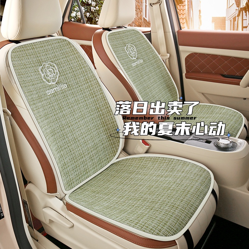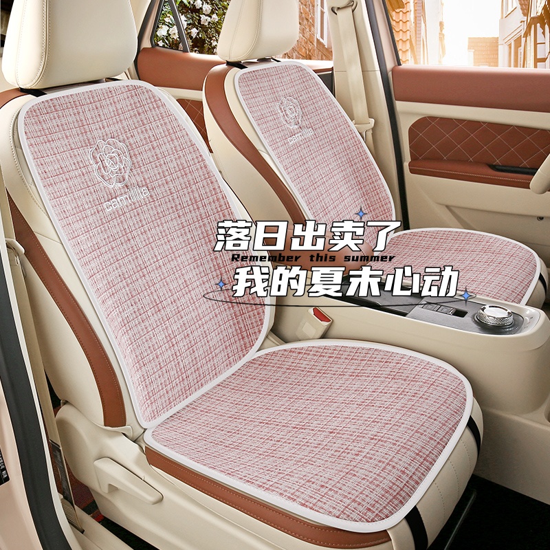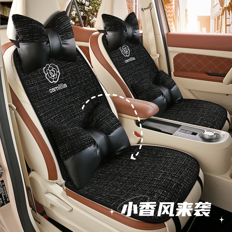 小香风山茶花汽车坐垫四季 座椅套网红座套 通用亚麻女神座垫秋冬季