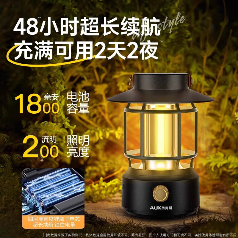 奥克斯户外露营灯超亮超长续航太阳能充电照明氛围灯复古野外马灯