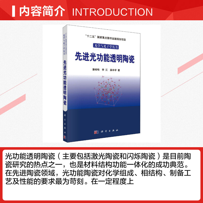 姜本学 著 科学出版 潘裕柏 社 图书籍 李江 新华书店正版 先进光功能透明陶瓷 自然科学总论专业科技