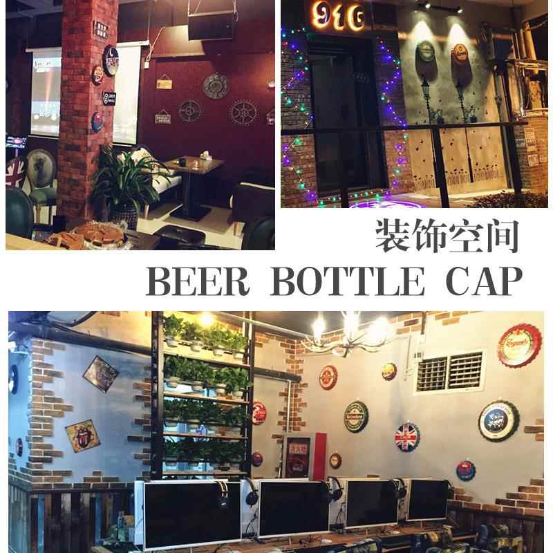 美式 饰挂件壁饰铁皮画 创意复古立体啤酒瓶盖酒吧夜店咖啡厅墙面装