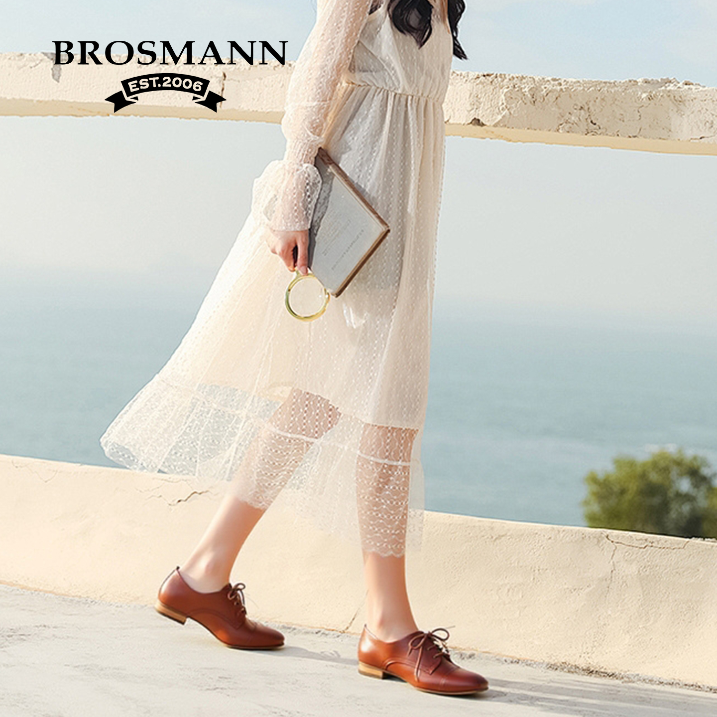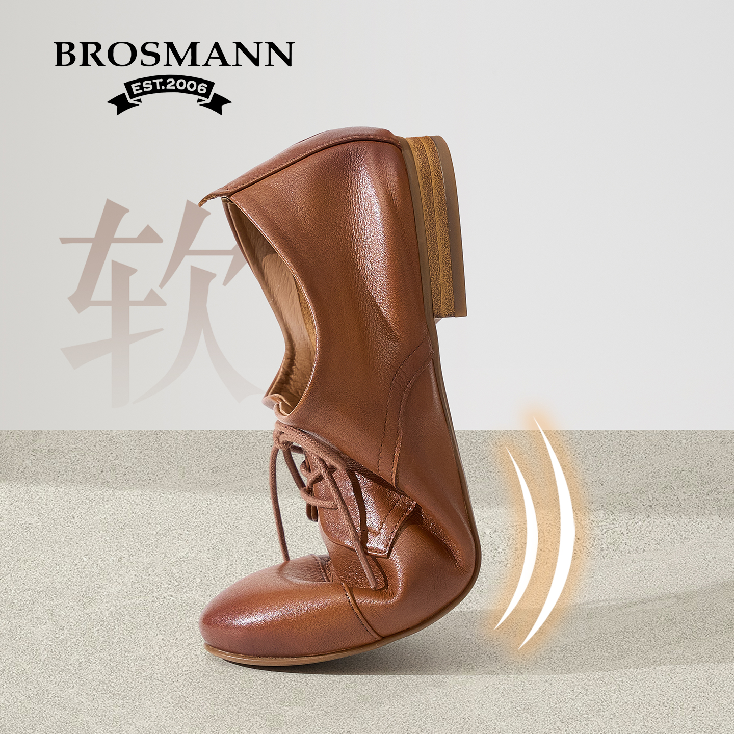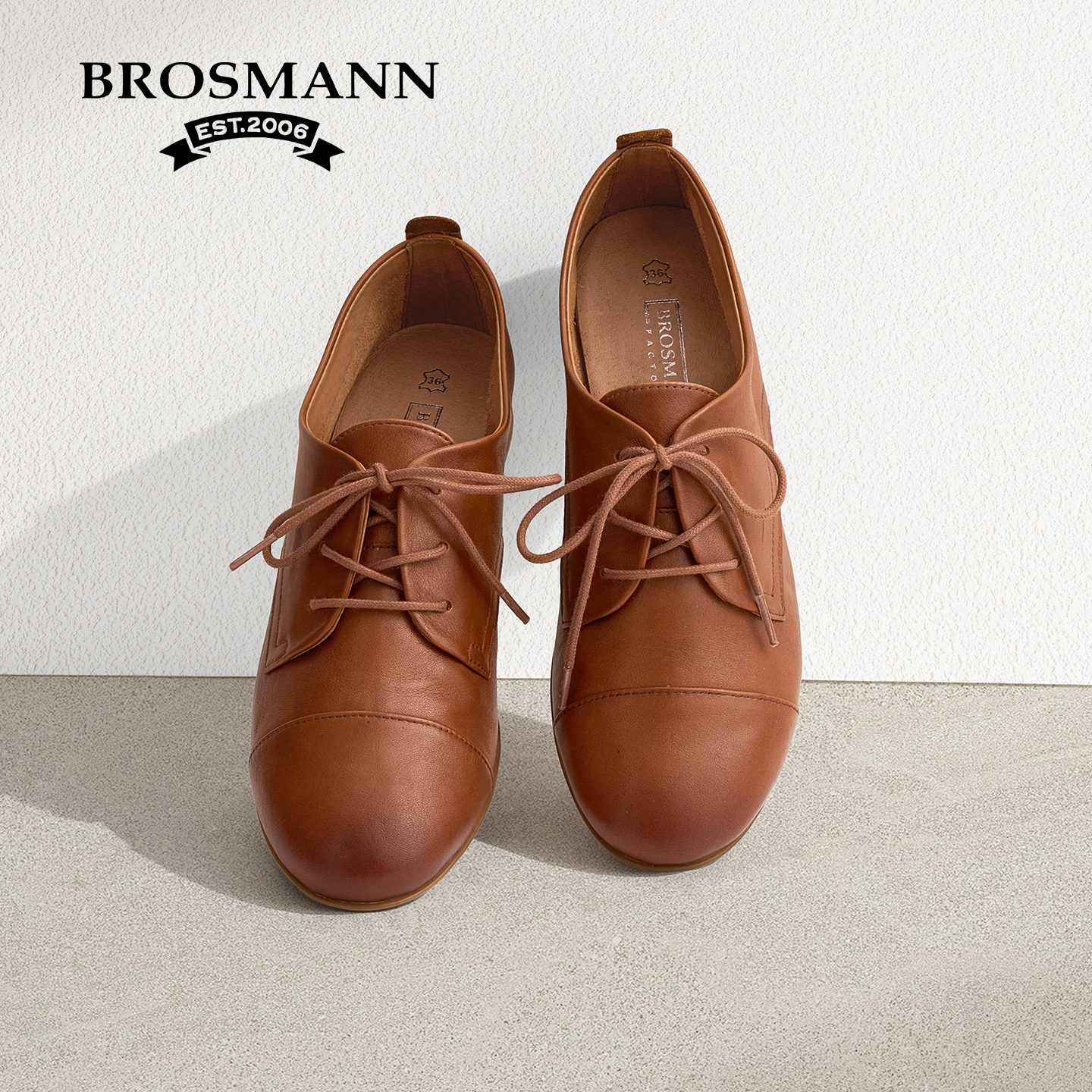 通勤棕色皮鞋 宝舒曼复古真皮乐福鞋 法式 女士系带圆头平底鞋 女新款