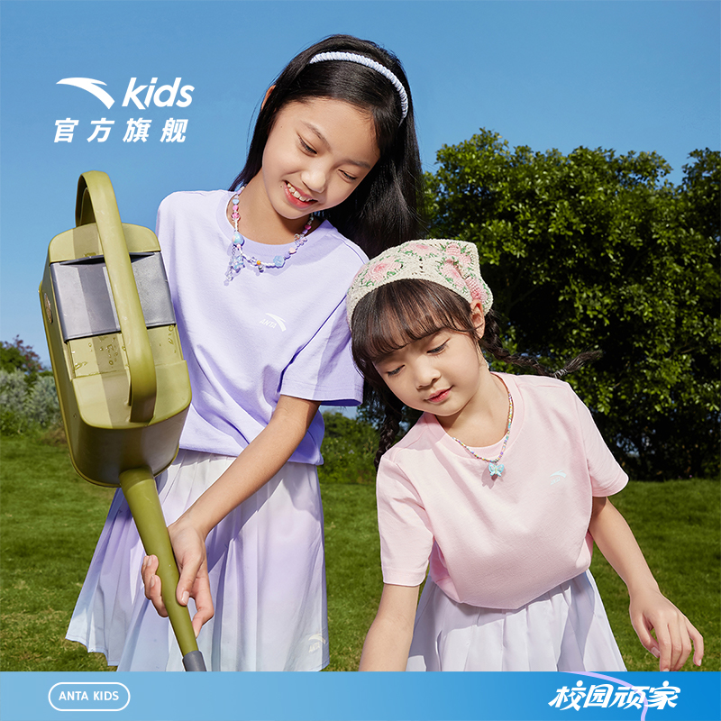 衣服大童运动上衣 宝宝夏装 安踏儿童速干衣短袖 t恤女童2025夏新款