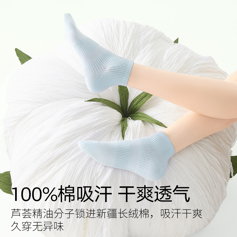 短袜夏薄100%纯棉抗菌2025新款 精油袜子女款 春秋爆款 芦荟润肤
