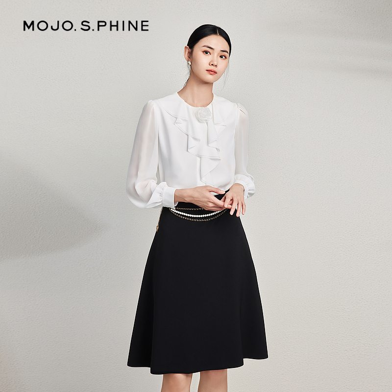 女士上衣白衬衫 白色衬衣女长袖 工作服修身 黑色高级工装 正 职业新款