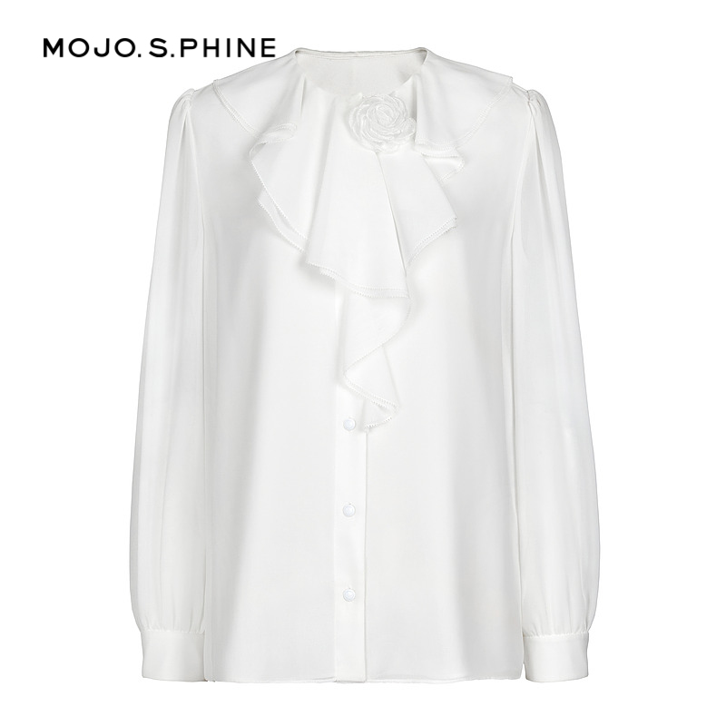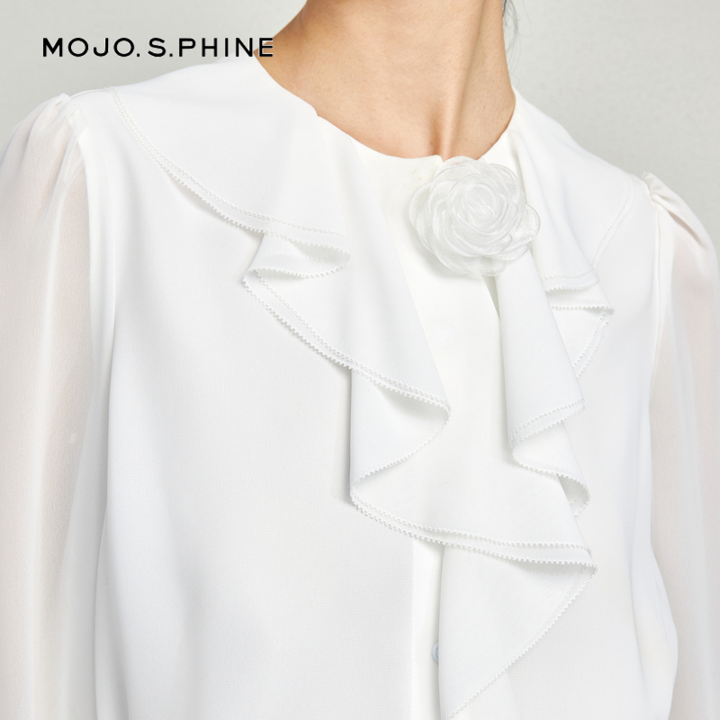 100%棉 2025春秋季 小众设计感灯笼袖 衬衫 宽松上衣 花边女式 a02