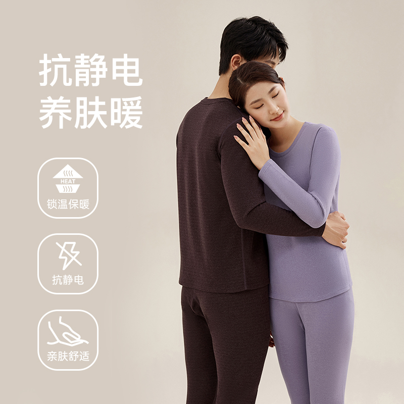 套装 好波山羊绒蚕丝保暖打底内衣情侣款 加厚女冬男女秋衣秋裤