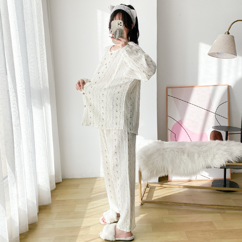 都市丽人纯棉月子服睡衣女春秋季 孕妇待产前产后哺乳期家居服套装