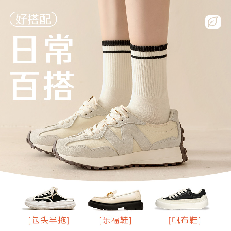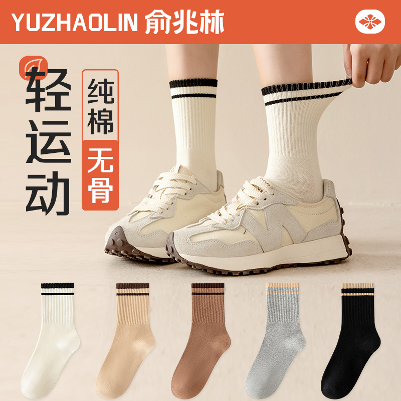 袜子女士中筒袜春秋冬季 长袜 纯棉无骨月子长筒袜运动外穿配鲨鱼裤