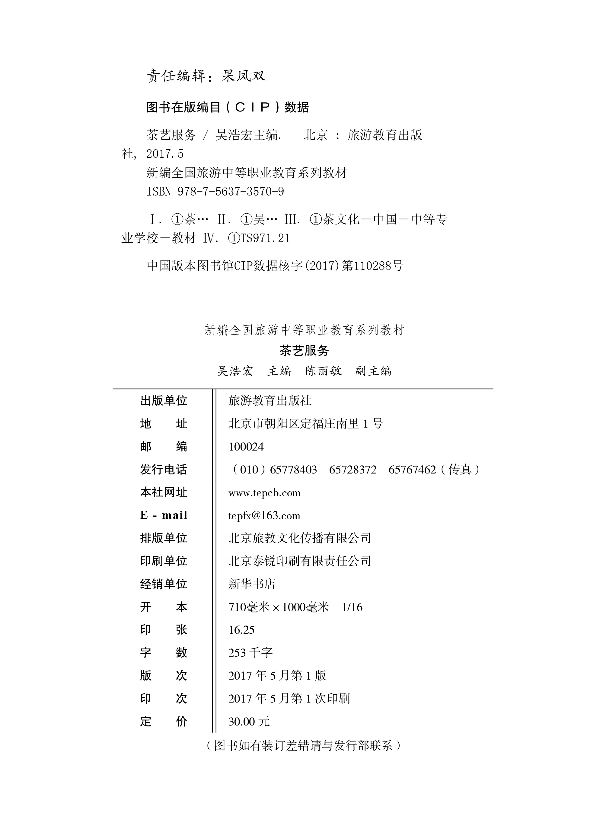 茶艺服务 社 吴浩宏主编9787563735709新编全国旅游中等职业教育系列教材旅游教育出版