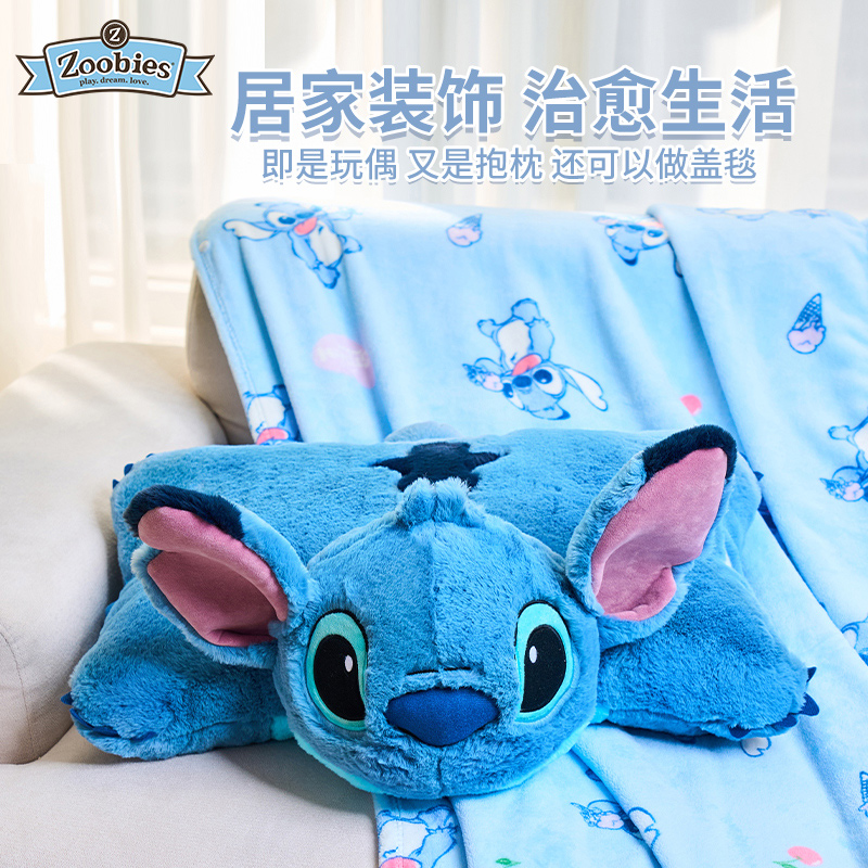 zoobies迪士尼星际宝贝史迪奇绒毯抱枕沙发靠垫可爱柔软舒适陪伴