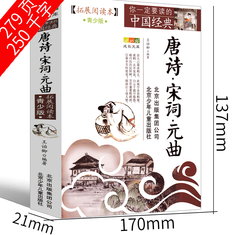 幼儿启蒙小学生拓展阅读本你一定要读 全集青少版 中国经典 成长文库王诒卿非注音正版 社旗舰店 唐诗宋词元 北京少年儿童出版 曲正版