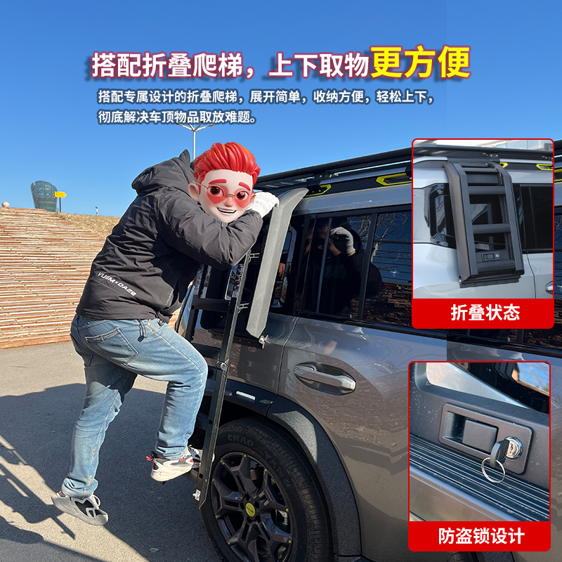 捷途旅行者山海T2加长版 平台爬梯书包车顶帐篷 7座车顶行李架改装