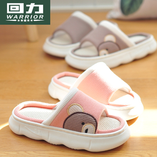 女 木地板静音布艺厚底情侣棉麻拖鞋 回力棉布拖鞋 居家防滑亚麻男士