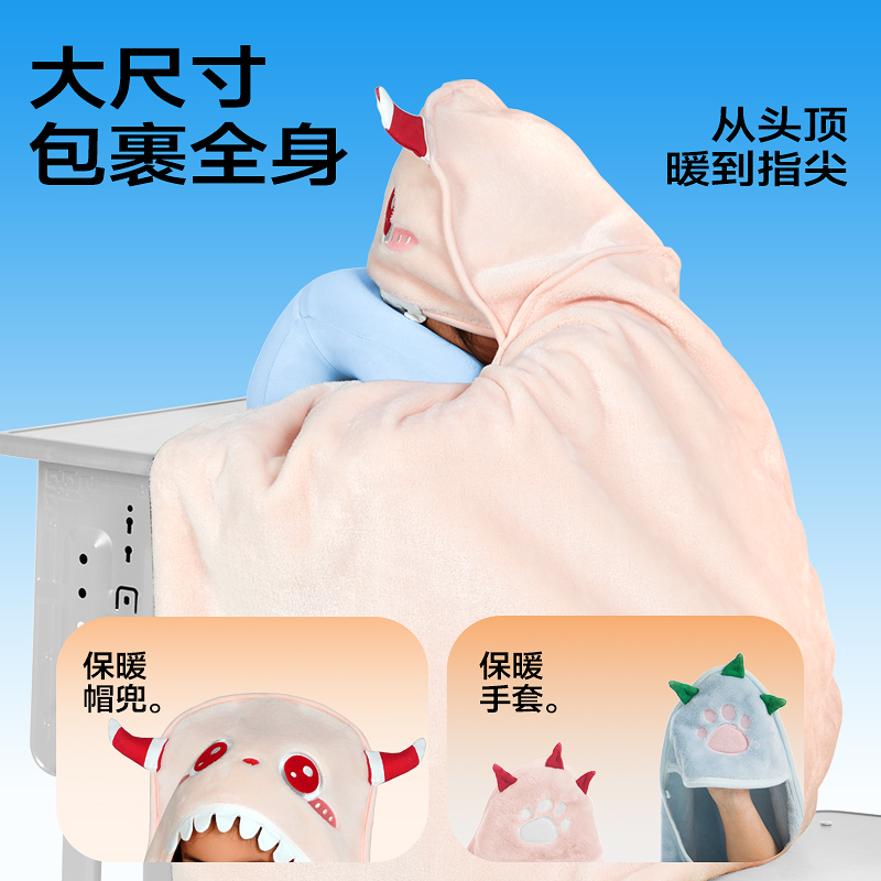 儿童午睡毯子小学生教室用抱枕斗篷午休神器披肩毛毯加厚盖被秋冬