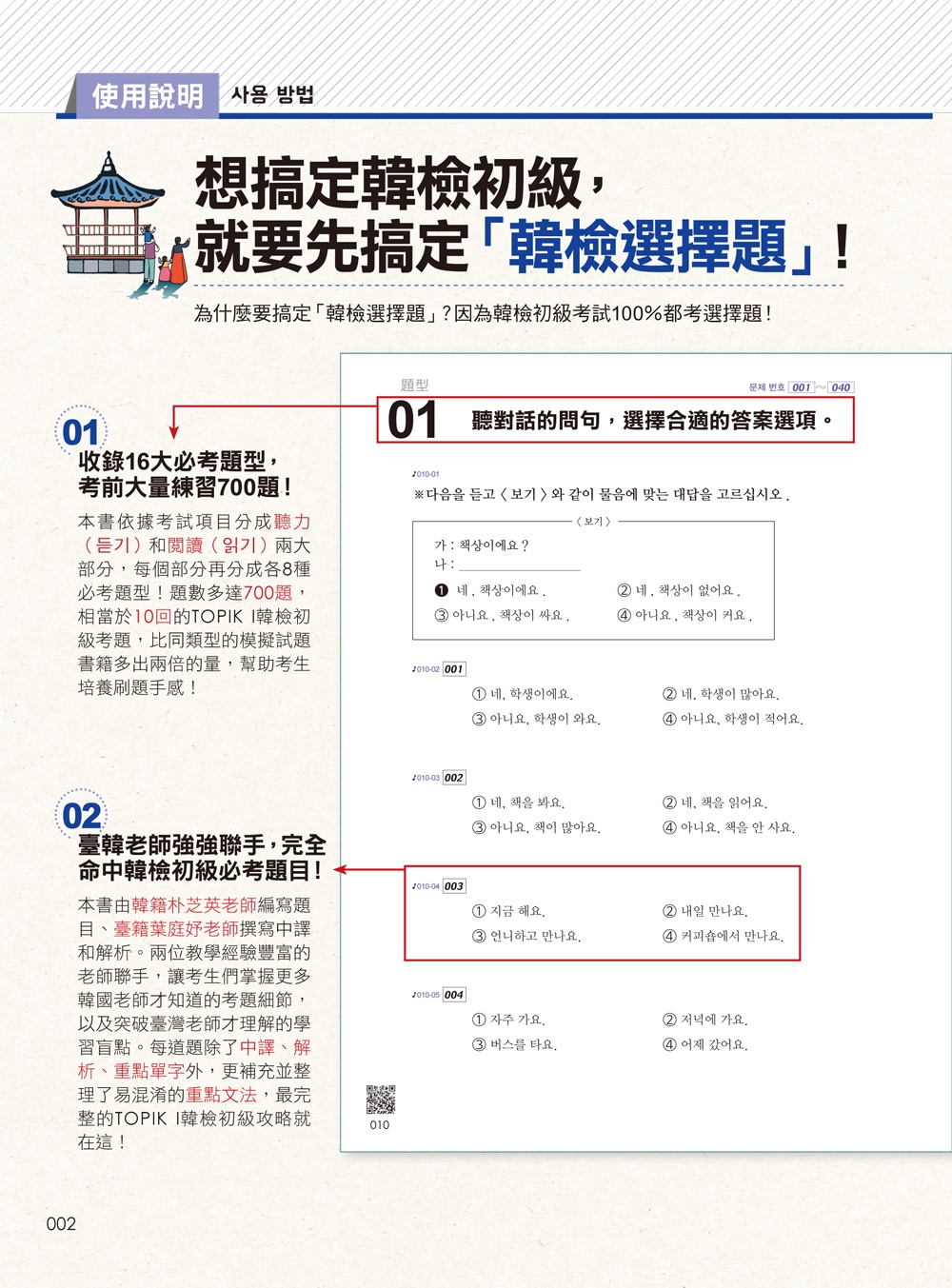 韩检一次通过 朴芝英 TOPIK 我识 App」内含V 附「Youtor 高效率 高报酬率 I韩检初级选择题700:高命中率 一定会考 预售