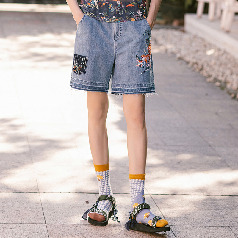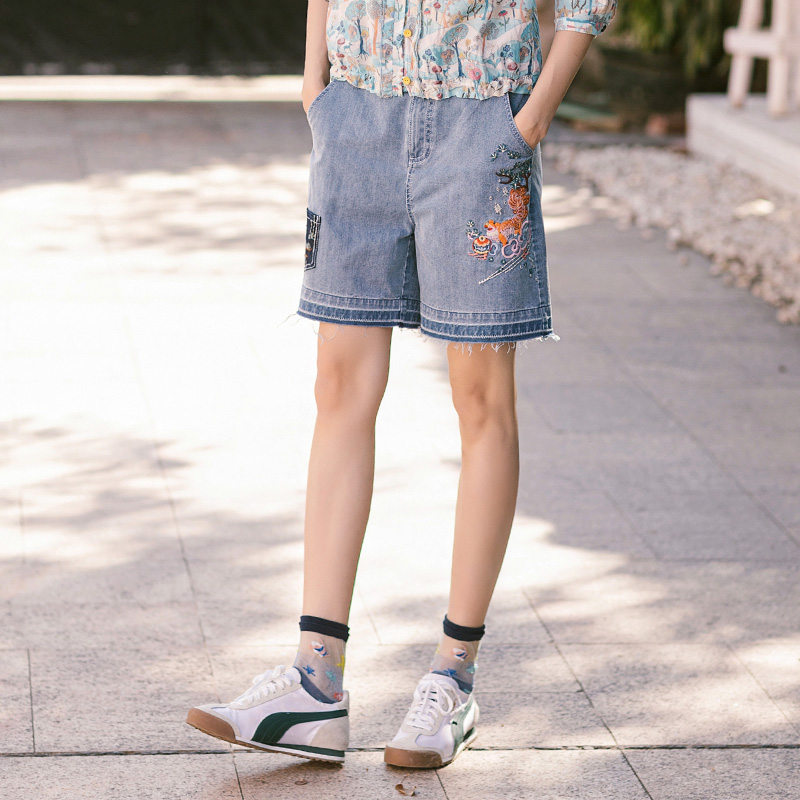 显瘦绣花牛仔裤 休闲牛仔五分裤 2024夏季 非鱼文艺百搭短裤