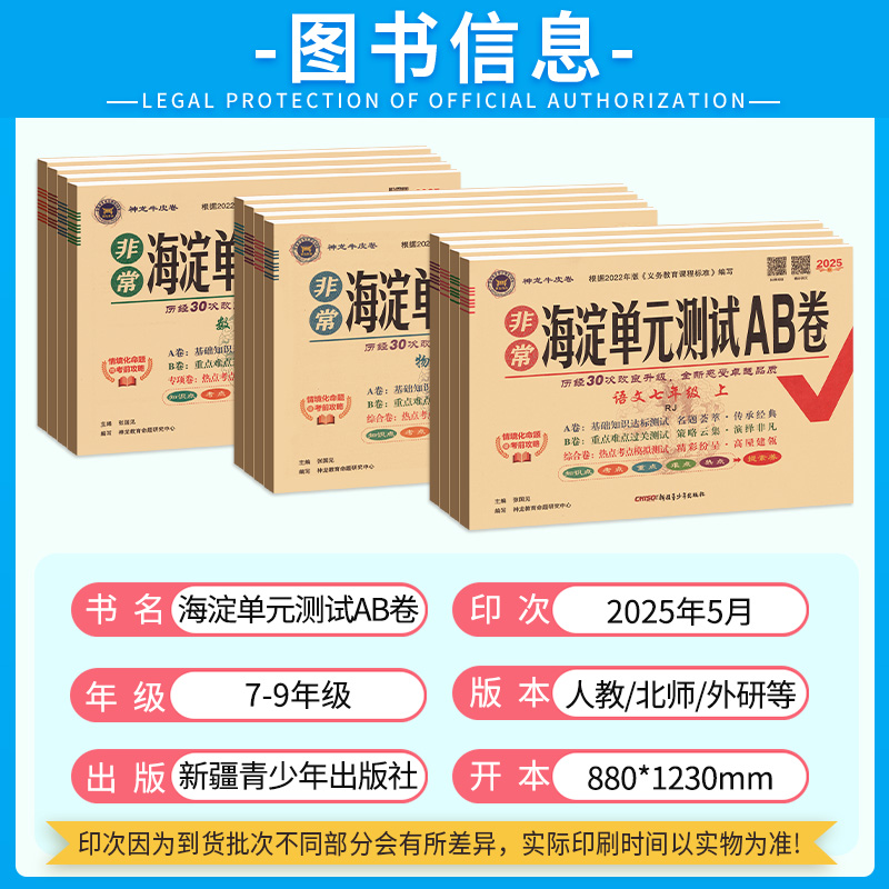 2025非常海淀单元 测试ab卷七八九年级上册下册语文数学英语物理化学政治历史地理生物人教沪科初中同步真题试卷全套期中期末海定AB
