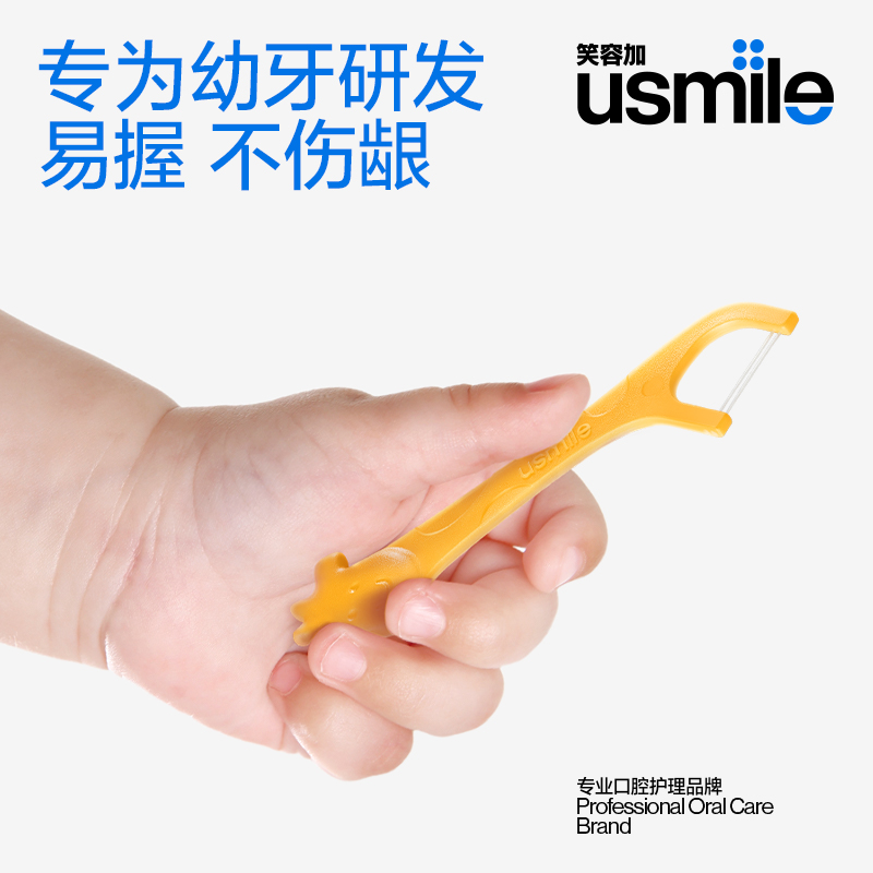 笑容加usmile儿童牙线清洁防蛀抗龋超细双线长颈鹿牙线棒