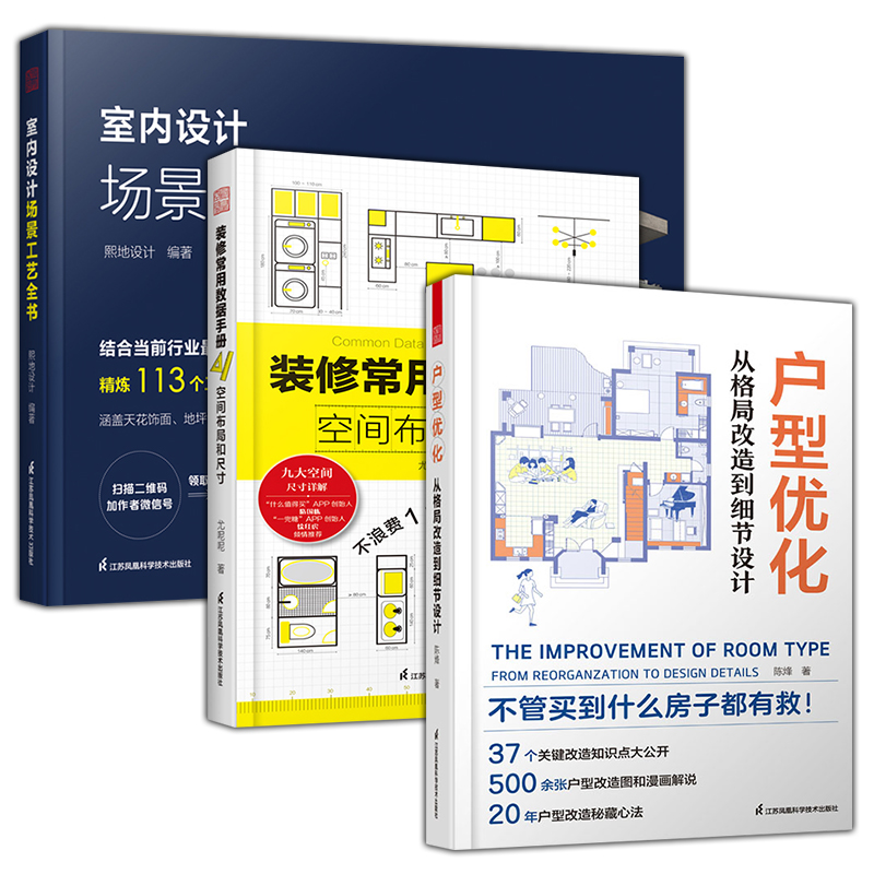 室内设计场景工艺全书全3册改造室内装 修常用数据手册 修设计方案优化效果图案例大全住宅布局书 装 户型优化格局改造到细节设计