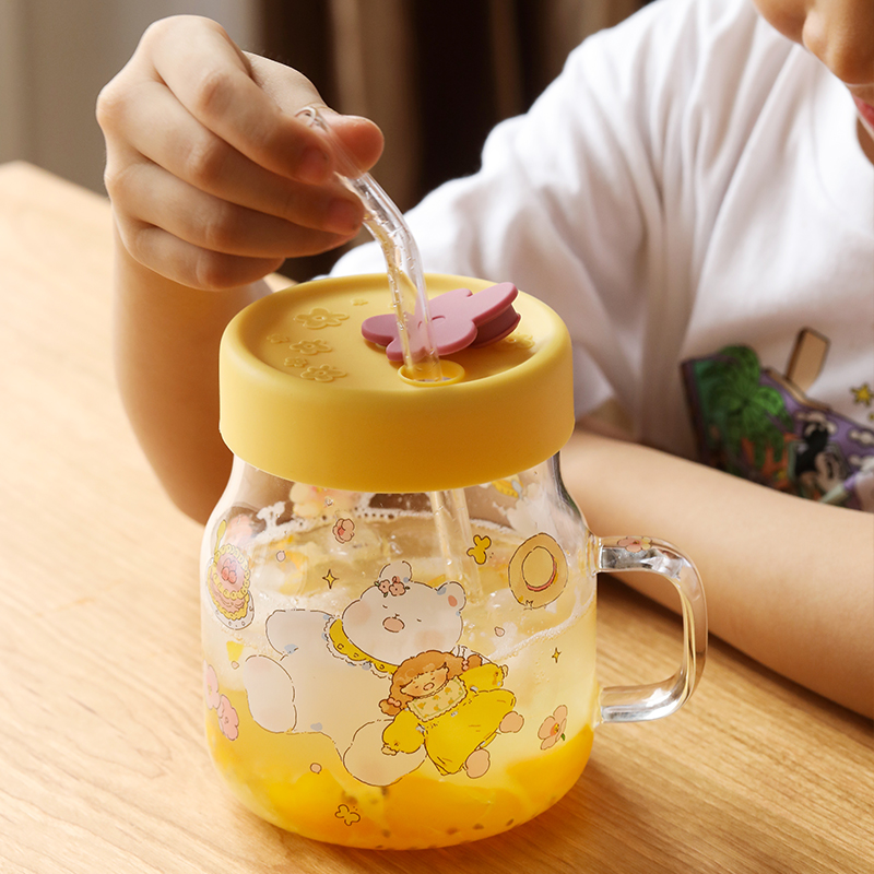 bociya保温杯水杯女高颜值新款 小巧便携学生儿童吸管双饮咖啡杯子