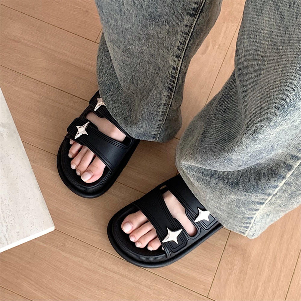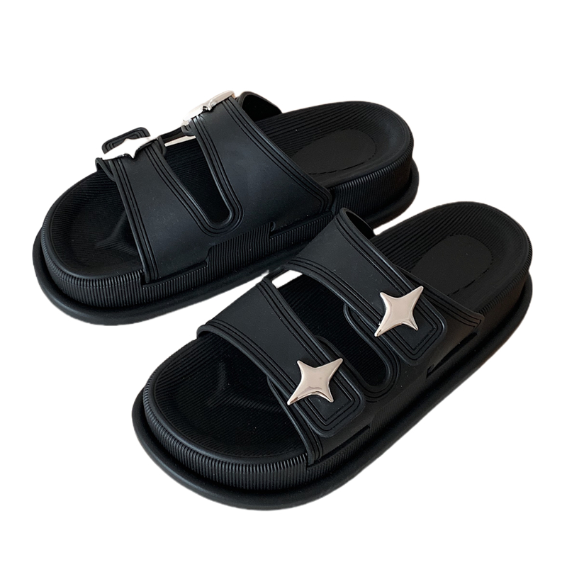 海边沙滩凉拖鞋 外穿休闲厚底增高夏季 女 网红防滑闪星双带拖鞋 韩版