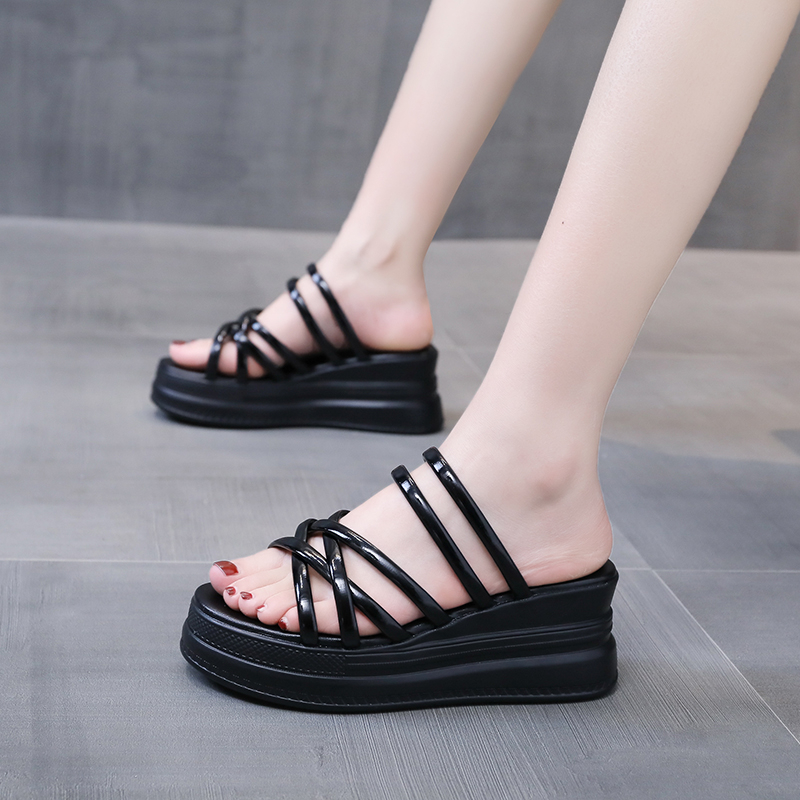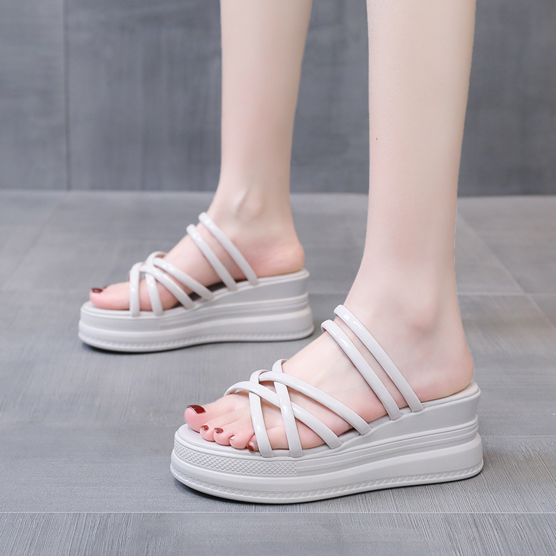 高跟鞋 网红拖鞋 高级感凉拖厚底坡跟凉鞋 法式 女夏天外穿2025年新款