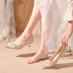 禾秀婚纱两穿低跟孕妇新娘鞋 爱丽拉法式 春季 女2025新款 不累脚 婚鞋