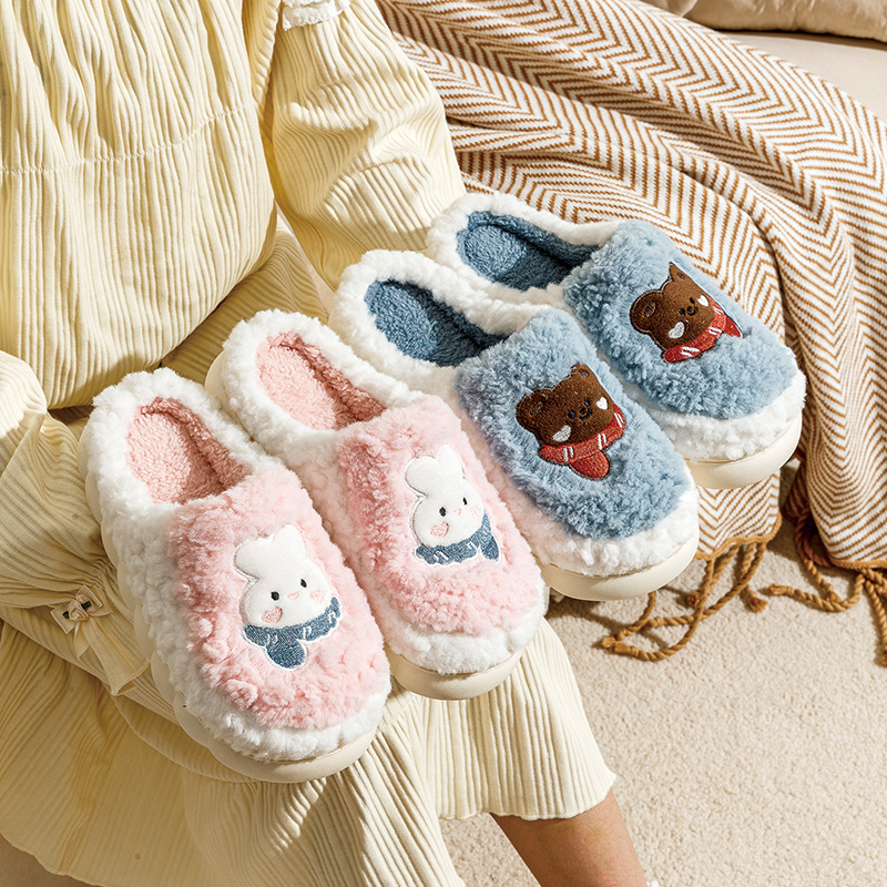 情侣男春秋 居家用室内厚底月子静音防滑防水家居拖鞋 棉拖鞋 女冬季
