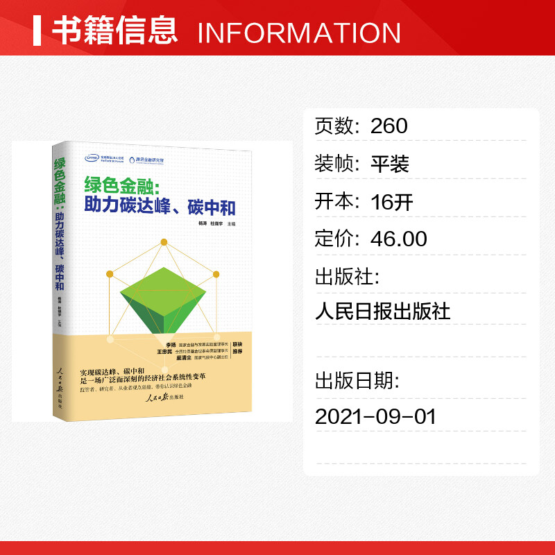 图书籍 社 杨涛 经济理论经管 励志 编 碳中和 杜晓宇 人民日报出版 绿色金融 新华书店正版 助力碳达峰