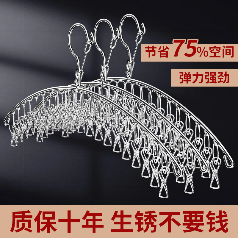 304不锈钢加粗晾衣架多夹晒晾衣服袜子架儿童多功能防风袜夹